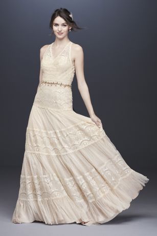 V Neck Scalloped Lace And Tulle Wedding Dress David S Bridal from img.davidsbridal.com Get the best deals on champagne wedding dresses. I received so many compliments on how unique this dress was. It even doubles as a bridal shower dress or a short wedding dress! If you wear our amazing champagne wedding dresses you will look your best. Unique and inexpensive wedding gowns that wow. Davids bridal dresses are simple white gowns, but they have evolved in ways unimaginable over the centuries. You cannot rent a wedding dress at david's bridal. Style 9wg3909 champagne strapless wedding dress with lace details and trumpet skirt.